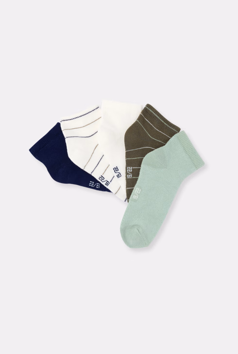 Baby boy's multicoloured plain and striped ankle socks (pack of 5)