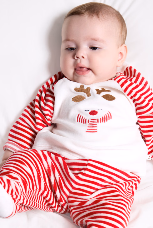 Baby boy's reed warm soft fabric and velvet reindeer pyjamas