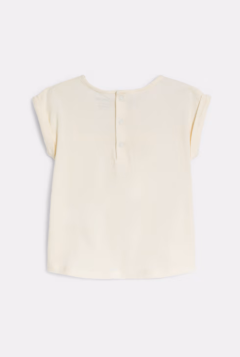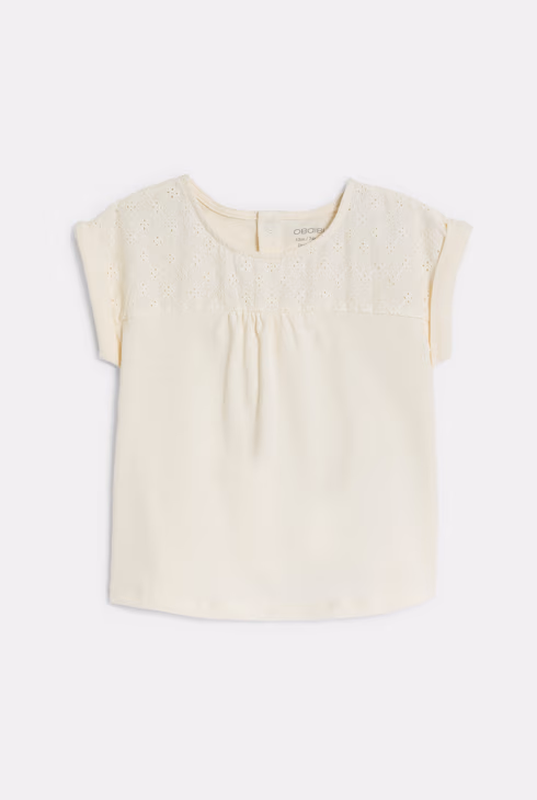 Baby girl's white two-fabric T-shirt with broderie anglaise