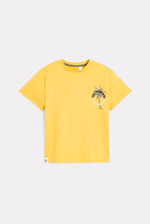 Boy's yellow short-sleeve T-shirt with palm tree design
