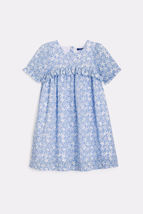 Girl's blue printed ruffled dress