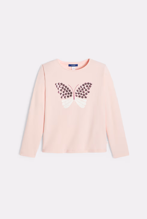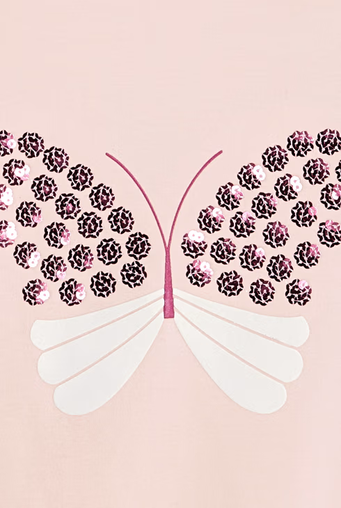Girl's pastel pink butterfly sequin T-shirt