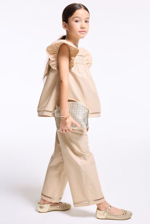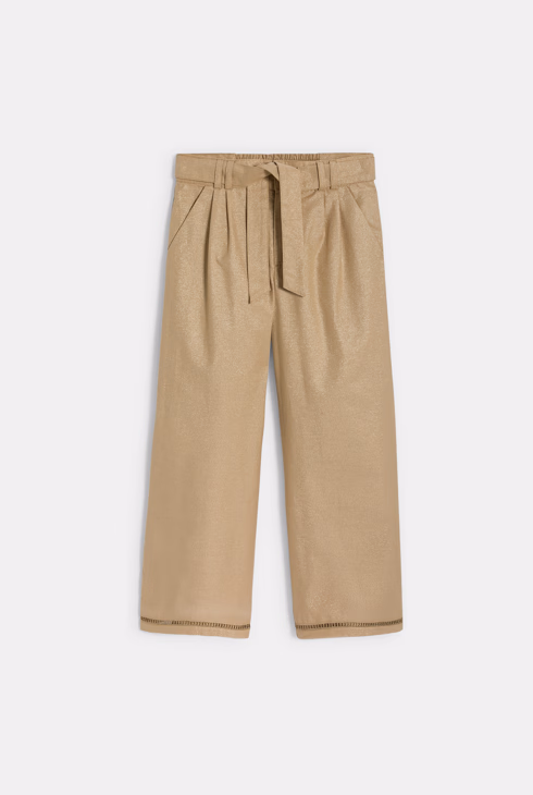 Girl's sand-coloured sparkly wide-leg trousers